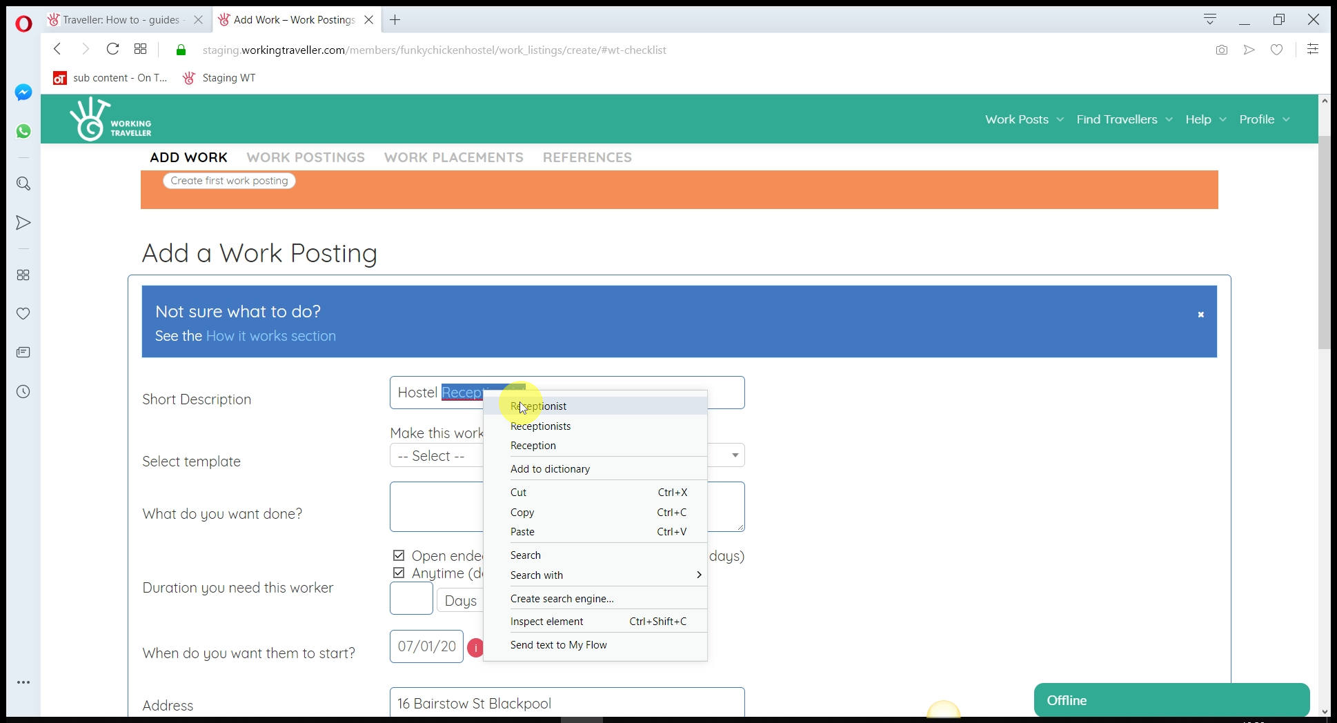 The work placement is now all done and you have a solid agreement with each traveller that is coming to work with you. It’s important to create a work placement before they arrive to save any misunderstanding and is the only way you can build your references. The more good references you gain – the higher you rank in searches made by travellers and obviously a better chance of getting good workers to want to come and work with you.